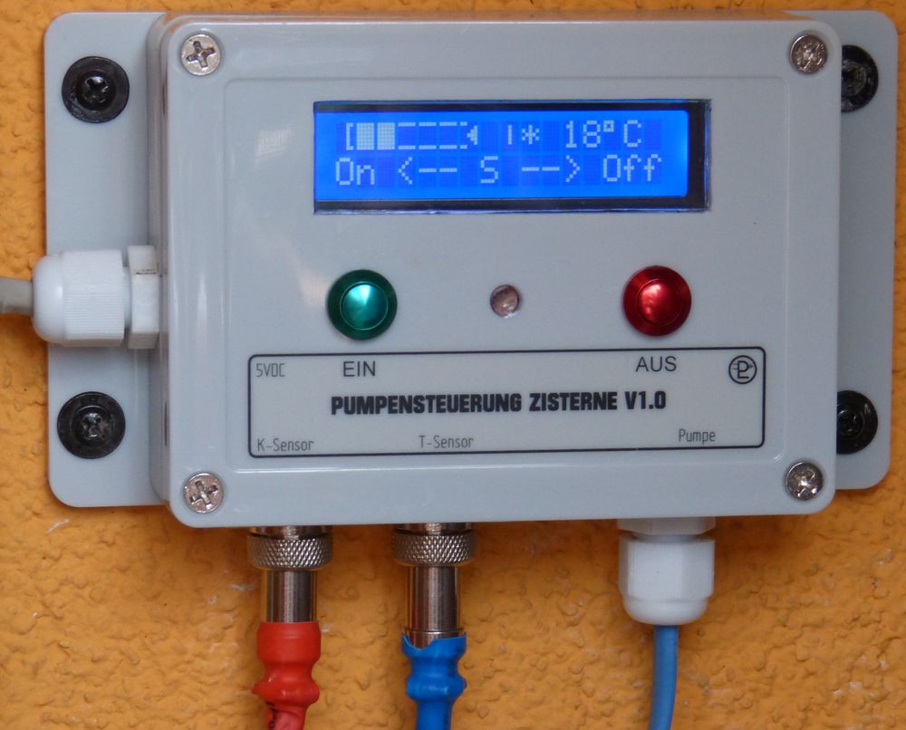 Ein Pumpensteuerung für eine Zisterne mit Leitfähigkeits- und Temperatursensor