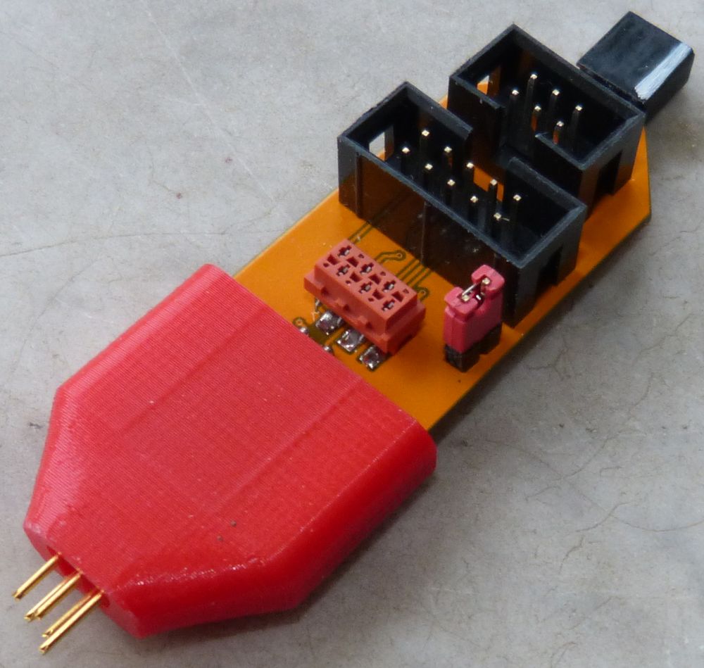 Damit können jetzt die unterschiedlichsten Anschlussszenarien realisiert werden. Zum Beispiel kann man einen gängigen USBasp am 2×5-Wannenstecker anstecken und mit einer 2x3poligen Micromatch-Verbindung die Zielschaltung kontaktieren. Eine weiter Option ist das direkte Anstecken des Adapters auf den ISP-Header eines ARDUINO Nano.