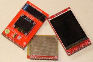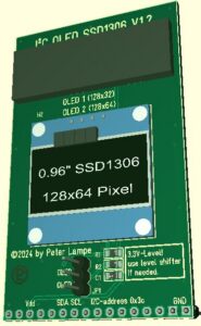 Hier handelt es sich um ein Erweiterungsboard mit dem beliebten SSD1306-Display. Diese gibt es mit einer Auflösung von 128×32 und 128×64. Beide finden auf der Platine Platz. Mittels Jumper kann man auswählen, welches Display genutzt werden soll. Das Board kann sowohl mit 3,3V als auch mit 5V vom Power Port gepatcht werden. Die Signalpegel betragen immer 3,3V. Die Ansteuerung erfolgt über den I²C-Bus oder direkt von den entsprechenden MCU-Anschlüssen.