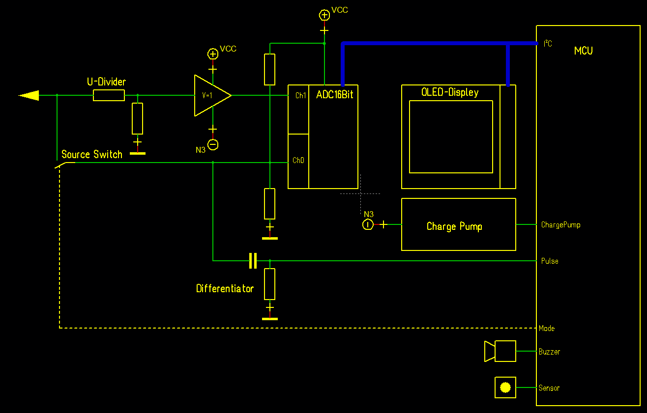 Als Ergebnis möchte hier einen kleinen Multitester in Form eines Prüfstifts vorstellen. Es handelt sich dabei um ein kombiniertes Messgerät zur Gleichspannungsmessung und zur Erfassung und Darstellung von Pegeln und Impulsen diverser Logiksysteme. Es sollte klein und kompakt sein und quasi eine Ergänzung zu meinem Entwicklungsarbeitsplatz MCU-Butler dienen.