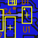 Als Erstes sollten jedoch die SMD-Bauelemente für die Ladungspumpe bestückt und deren Funktion überprüft werden. Aus Gründen der Störsicherheit habe ich die unmittelbar an GPIO6, unter der MCU angeordnet, weit weg vom Analogteil. Wenn der Pico erst aufgelötet ist, kommt man da nicht mehr ran! Also sind erst mal D1, C5, C8 und R14 zu bestücken. Dann speist man an Pin 9 des noch unbestückten U3 ein 20hkHz-Rechtecksignal mit 3,3V Impulshöhe ein. Am Pin 2 des Operationsverstärkers muss dann eine negative Spannung von ca. -2,7V zu messen sein. Bei einem 5V-Rechtecksignal ist das entsprechend mehr. Es kommt hier noch nicht auf den genauen Wert an sondern nur auf die Funktion. Ist die gegeben, kann mit der Bauelementebestückung fortgesetzt werden.